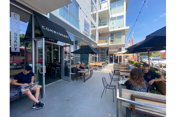 Neighboring tenants include: Pop’s Bagels, Pedini, Coffee Commissary, Kinari Aburi Sushi & Noodle, Madre Mexican Restaurant and Mezcaleria, Tailwaggers, Aesop, Blue Bottle Coffee, and more