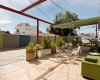 • Outdoor covered private patio area with retractable awnings | glass table, chairs, and lounge seating